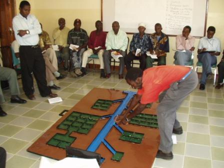 YouTube: Two videos of the game played by water officers at a training session can be found here (competition round) and here (cooperative round). A short video of farmers in Tanzania using the game can be found here.